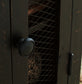 | Details | Made with pine veneers, pine wood and engineered wood, Two-tone distressed finish (light brown top and rustic vintage black base), Single door cabinet with metal grill and hardware, Center shelf | |